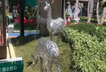 街道草地?cái)[放不銹鋼鏡面鹿動物雕塑