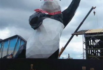 可愛(ài)熊貓雕塑,擺放玻璃鋼足球,為庭院添彩