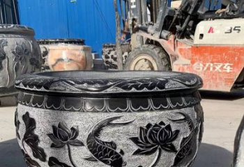 精美大理石浮雕鯉魚荷花舊庭院圓形水缸